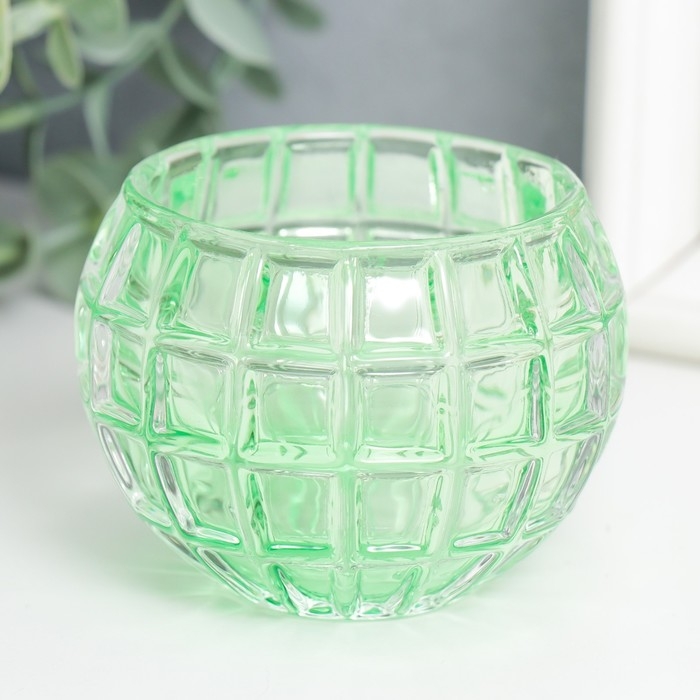 Подсвечник стекло "Бочонок" d-4,5 см зелёный 7,5х7,5х6 см