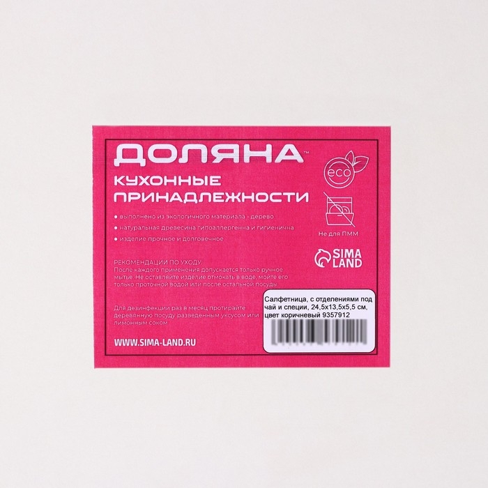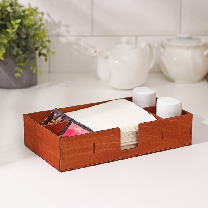 Салфетница деревянная Доляна, с отделениями под чай и специи, 24,5×13,5×5,5 см, цвет коричневый