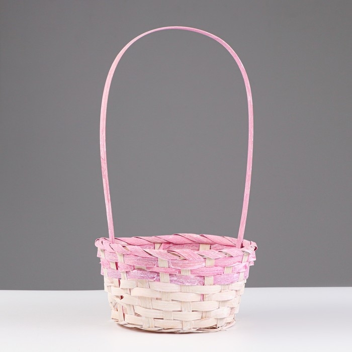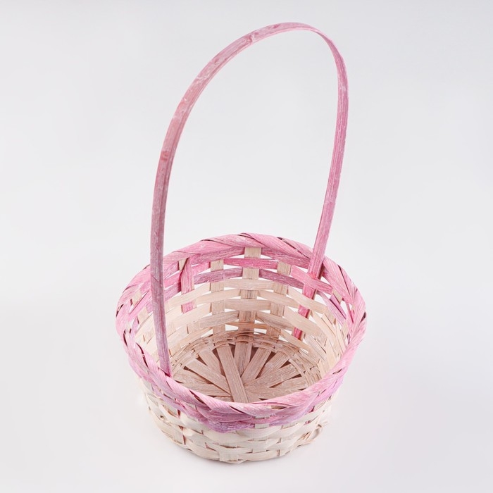 Корзина плетеная бамбук, D13xH9,5/28см, светло-розовая