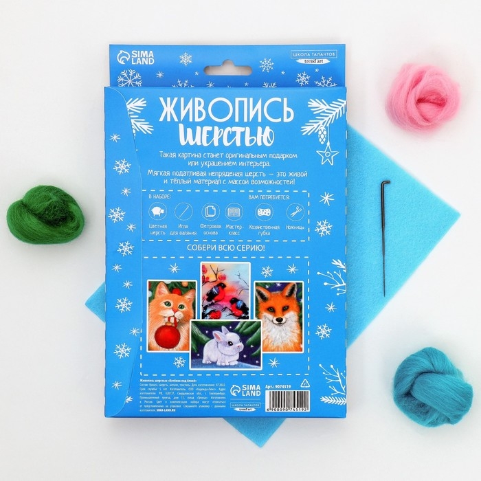 Валяние из шерсти на новый год. Живопись шерстью «Милая лисичка», А5, новогодний набор для творчества