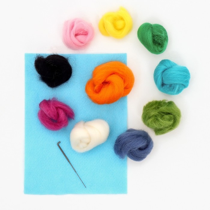 Лоскуты цветной шерсти, специальную иглу и лист фетра, который будет служить холстом для вашей картины.