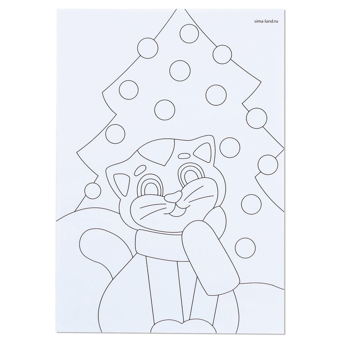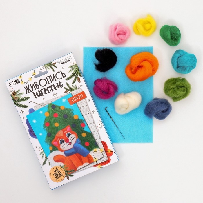 Валяние из шерсти на новый год. Живопись шерстью «Котёнок под ёлкой», А5, новогодний набор для творчества