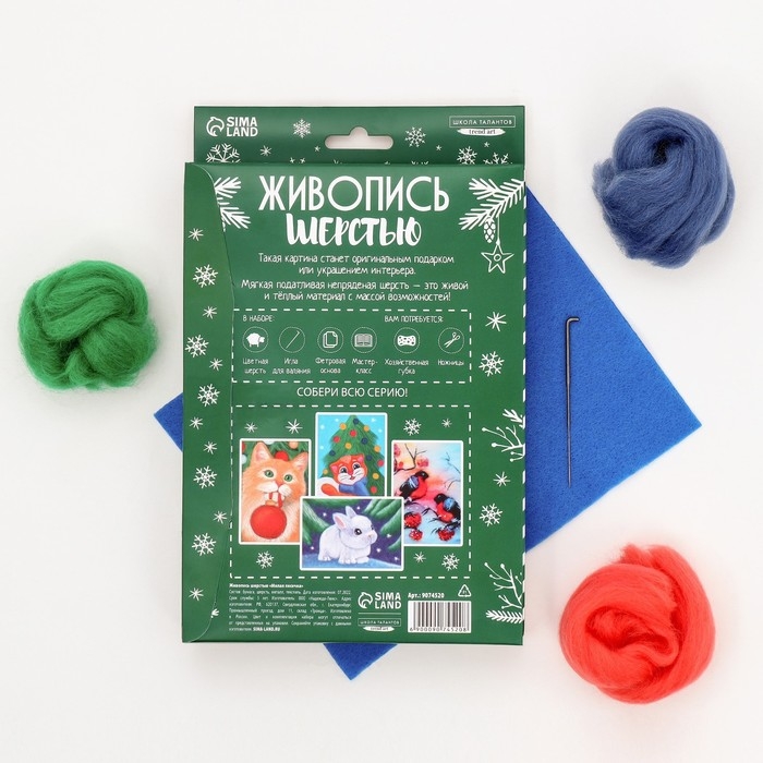 Валяние из шерсти на новый год. Живопись шерстью «Милая лисичка», А5, новогодний набор для творчества