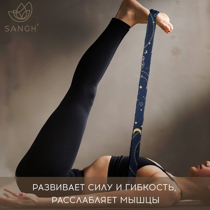 Ремень для йоги Sangh Moon, 180 х 4 см, цвет синий