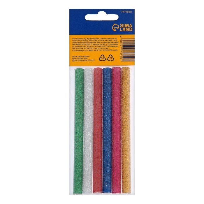 Клеевые стержни ТУНДРА ВДОМ, 7 х 100 мм, разноцветные с блестками, 6 шт.