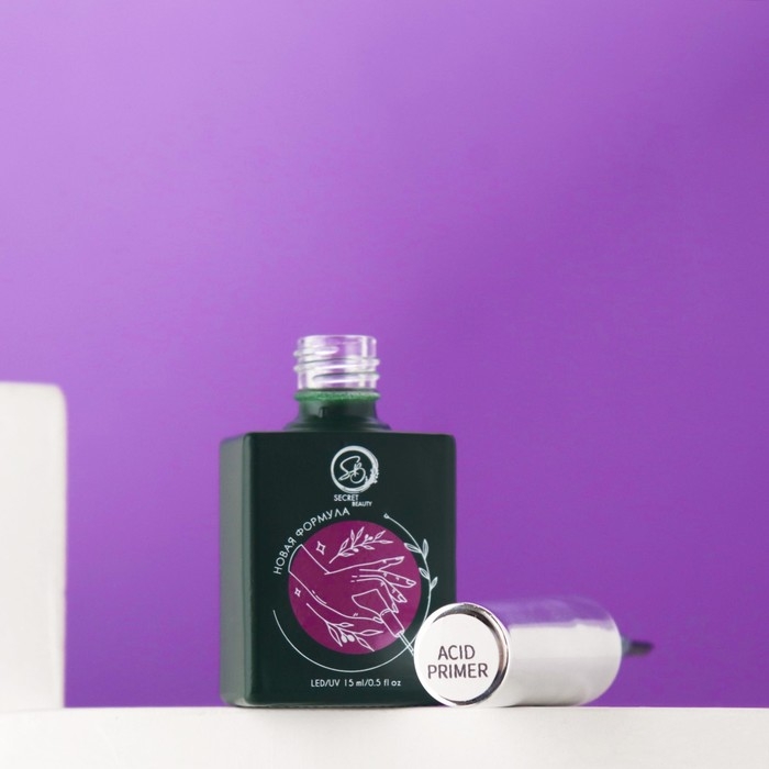 Кислотный праймер Secret Beauty с усиленной формулой на основе метакриловой кислоты предназначен для улучшения адгезии искусственного материала с натуральными ногтями.