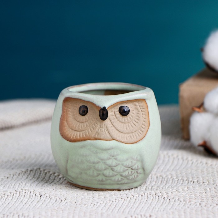 Горшок "Сова Ухта" 6,5х6,5х6см, бирюзовый