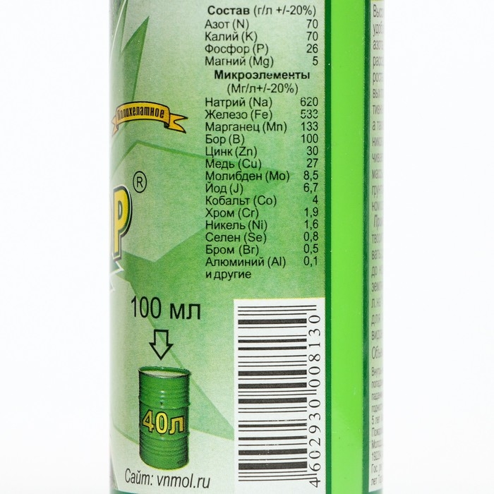 Для удобства потребителя разработчики довели содержание действующих веществ в “Унифлоре” до концентраций близких к физическому пределу растворимости. Это обеспечило то, что маленький флакон 100 мл “Унифлора” по содержанию действующего вещества не уступает, пол литровой бутылке любого органического или гуминового удобрения, что удобно как для покупателя, так и для торговли.
