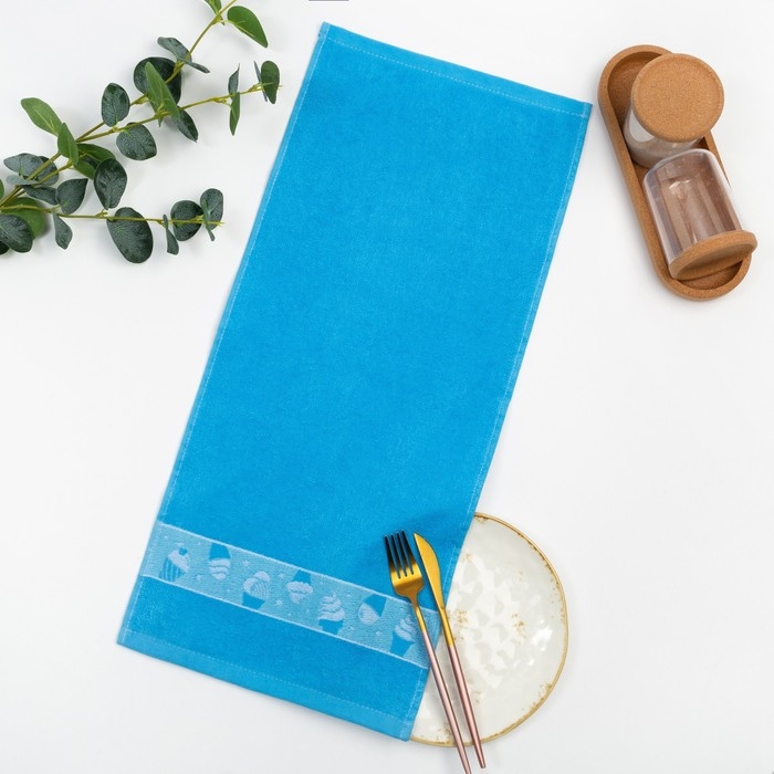 Полотенце 30х60 см, Мороженое, голубой МИКС, 340 гр/м, махра, хлопок