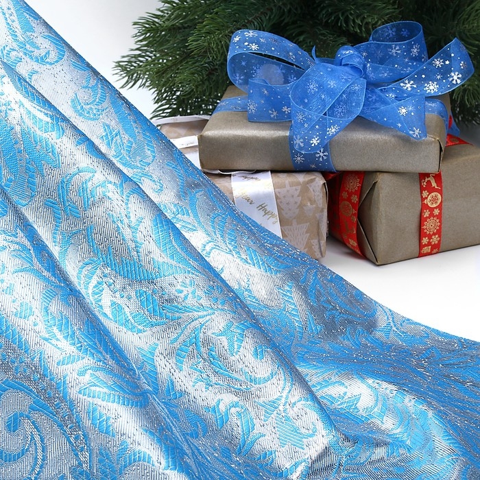 Лоскут для рукоделия, 50 х 50 см, парча, серебро на голубом