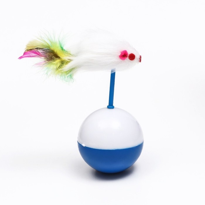 Мышь-неваляшка из искусственного меха на шаре, 11 х 6 см синий/белый