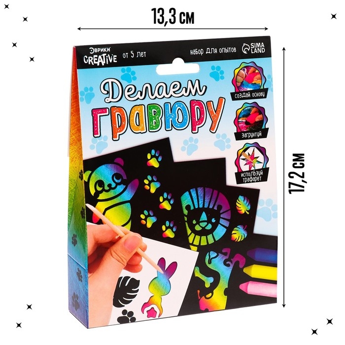 Набор для опытов «Делаем гравюру» поможет вам освоить технику граттаж, или воскографию, и сделать гравюру своими руками. Вы не просто закончите заготовку, а создадите собственную картину с нуля!
