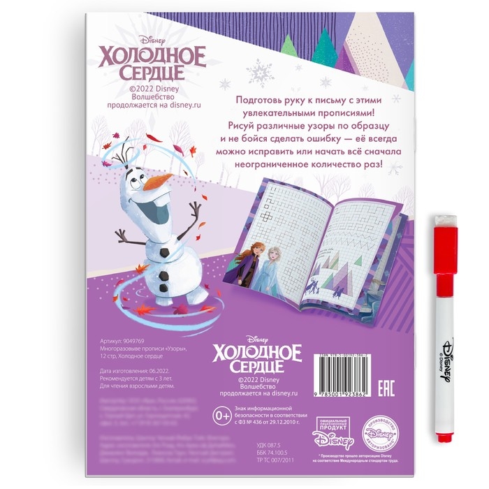 Многоразовые прописи «Узоры», 12 стр., 17 × 24 см, Холодное сердце