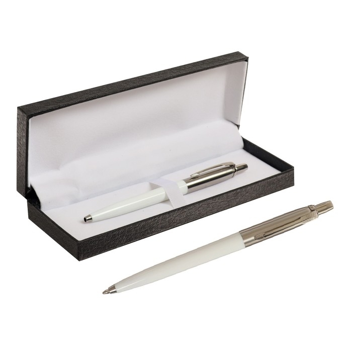 Ручка подарочная шариковая в кожзам футляре, автоматическая, корпус белый, серебро