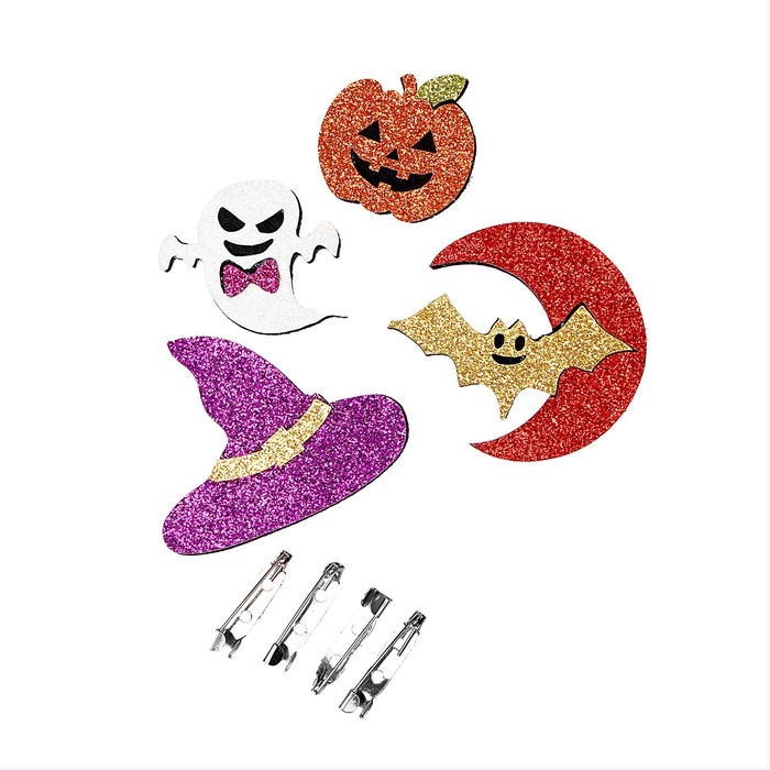 С набором «Блестящие фигурки» вы сможете создать четыре броши своими руками в тематике Хэллоуина.