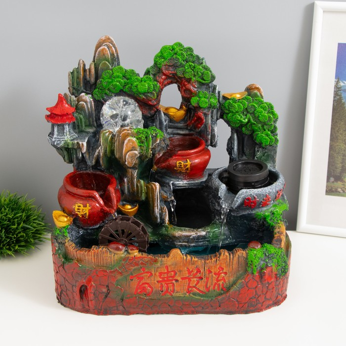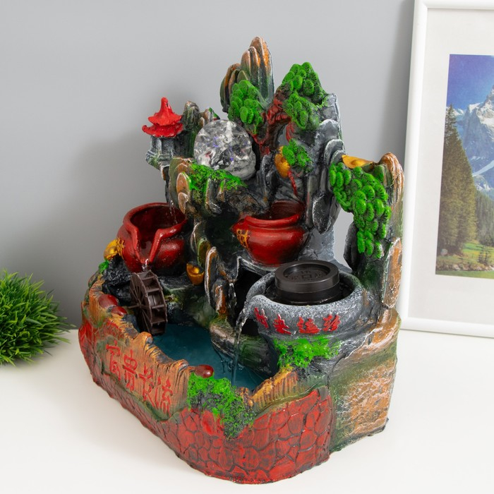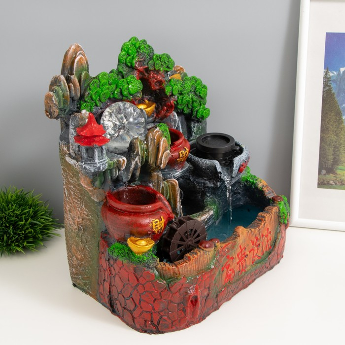 Фонтан настольный полистоун от сети свет "Водяная мельница и пагода" 30х19х31 см