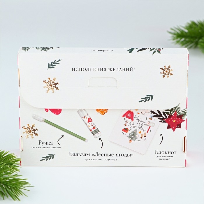 Подарочный набор новогодний блокнот, ручка и бальзам для губ «Верь в чудеса»
