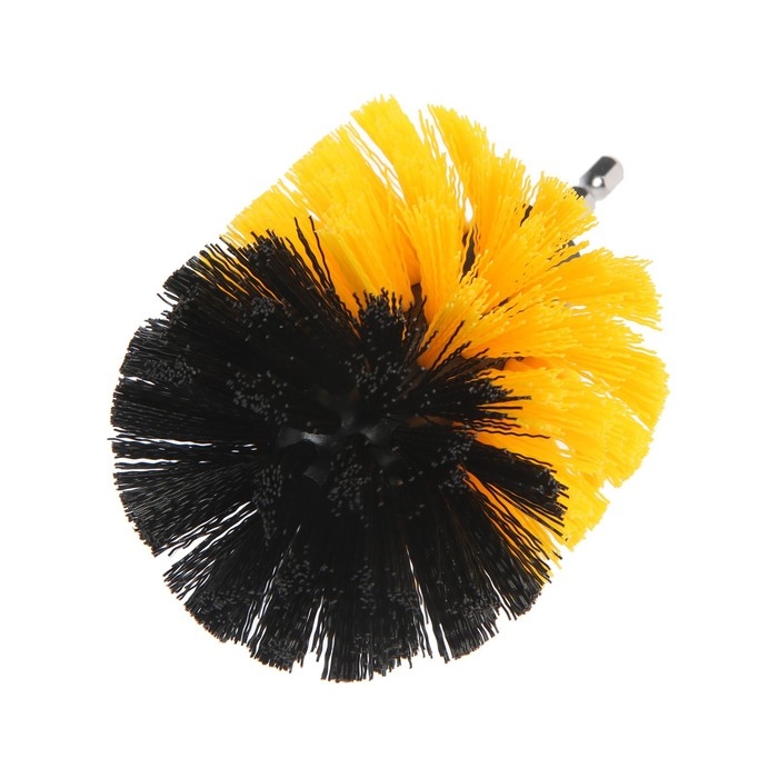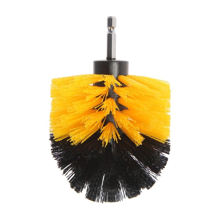 Корпус щётки выполнен из прочного пластика. Щетина выполнена из нейлона средней жёсткости. Диаметр щётки составляет 87 мм, высота 125 мм. Шестигранный хвостовик надёжно фиксируется в патроне инструмента.