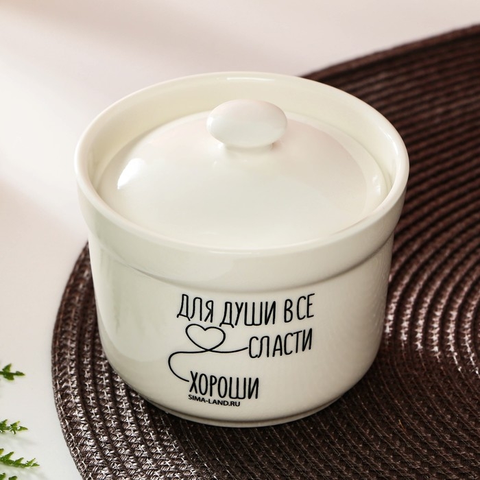 Сахарница керамическая «Для души», 250 мл, цвет белый