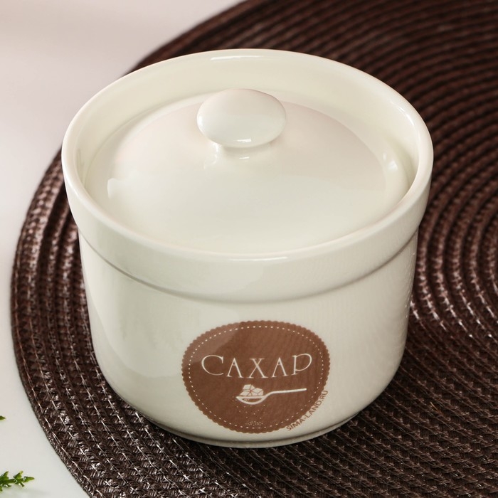 Сахарница керамическая «Сахар», 250 мл, цвет белый
