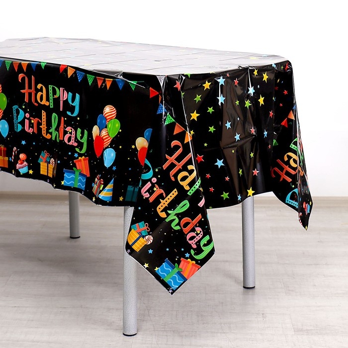 Скатерть «С днём рождения», 137 × 183 см, чёрная