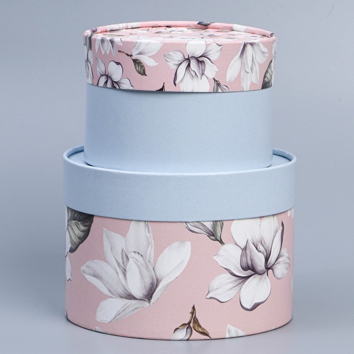 Набор шляпных коробок 2 в 1, упаковка подарочная, «Цветы», 16 х 11.5, 13 х 9 см