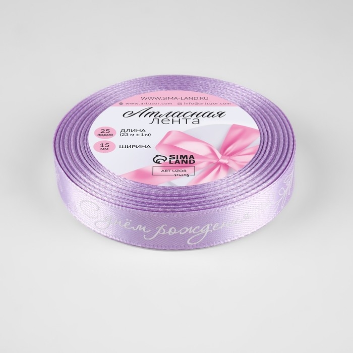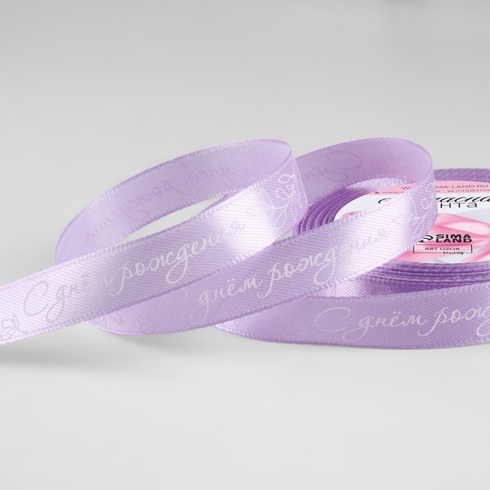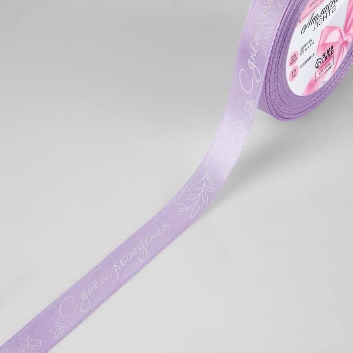 Лента атласная «С днём рождения», 15 мм × 23 ± 1 м, цвет сиреневый №045
