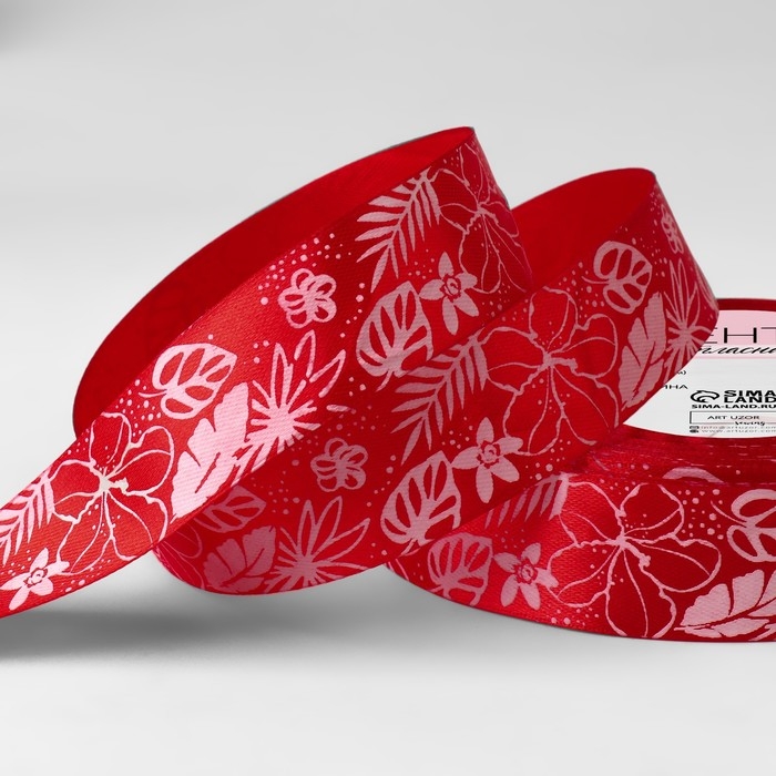 Лента атласная «Тропики», 25 мм × 23 ± 1 м, цвет красный №026