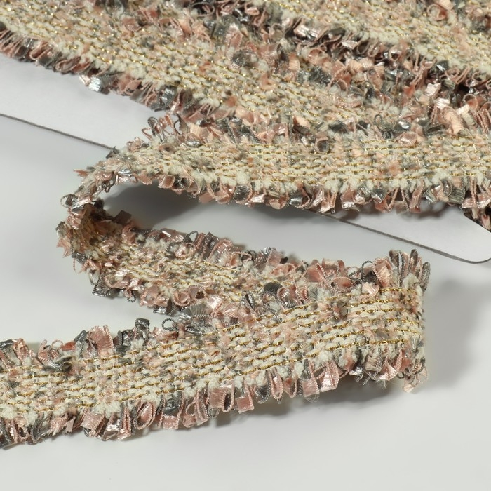 Тесьма декоративная «Твидовая», двусторонняя, 30 мм, 5 ± 0,5 м, цвет песочно-розовый