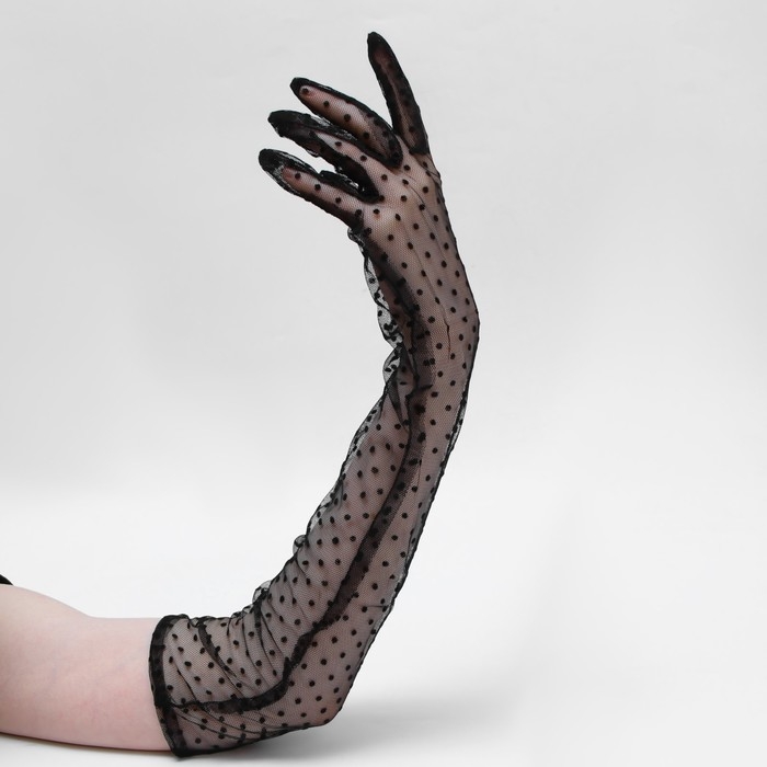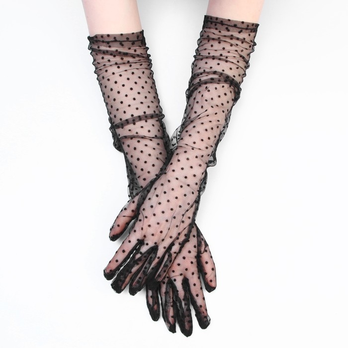 Перчатки женские в горошек, цвет чёрный в горох, длинные