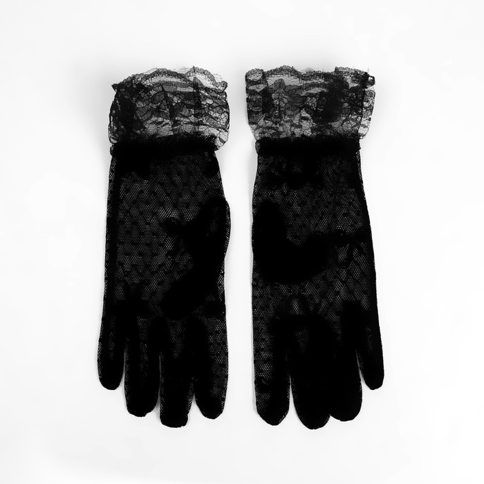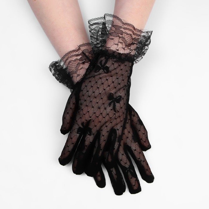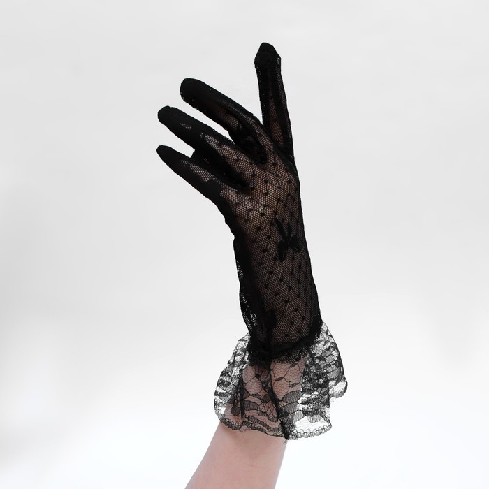 Перчатки женские кружевные, цвет чёрный, короткие