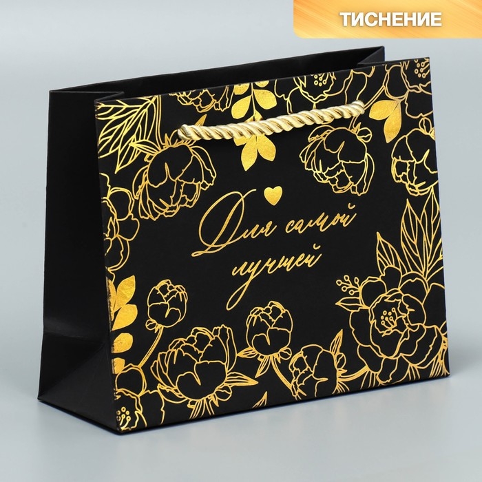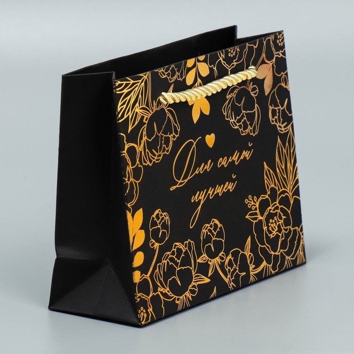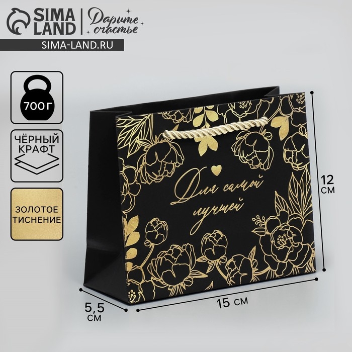 Пакет подарочный, упаковка, «Лучшей», чёрный крафт, 15 х 12 х 5,5 см