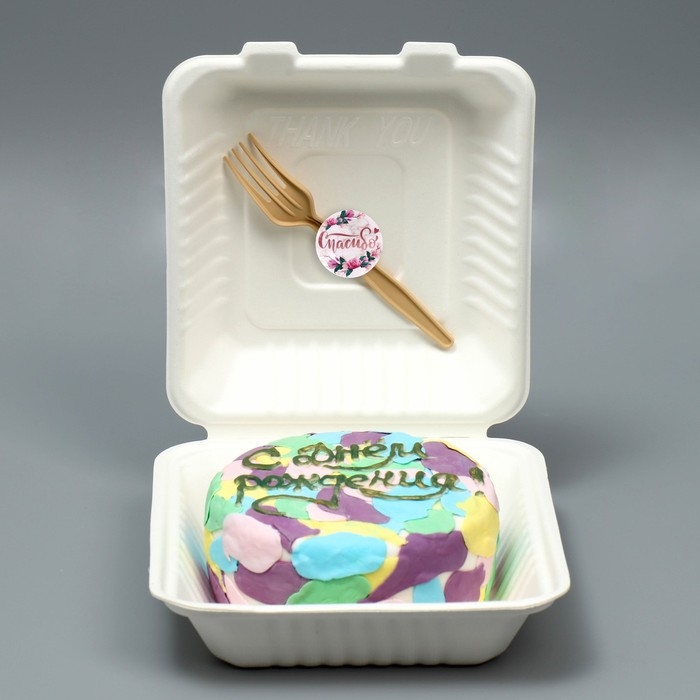 Коробка для бенто-торта с вилкой, кондитерская подарочная упаковка, «Спасибо», 21 х 20 х 7,5 см