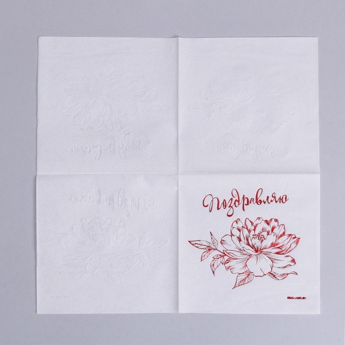 Салфетки бумажные «Поздравляю», 20 шт, красное тиснение, 25 х 25см