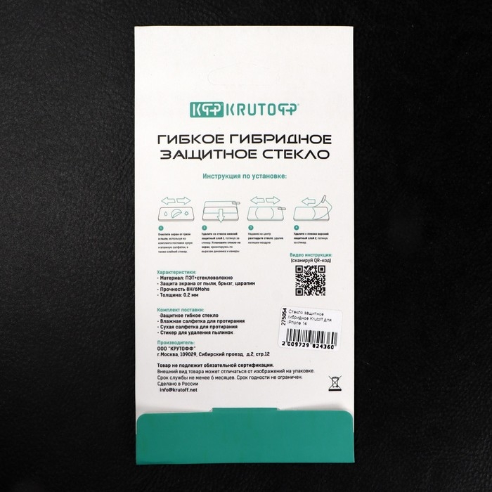 Защитное стекло Krutoff для iPhone 14, гибридное, полный клей