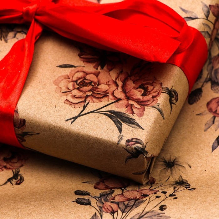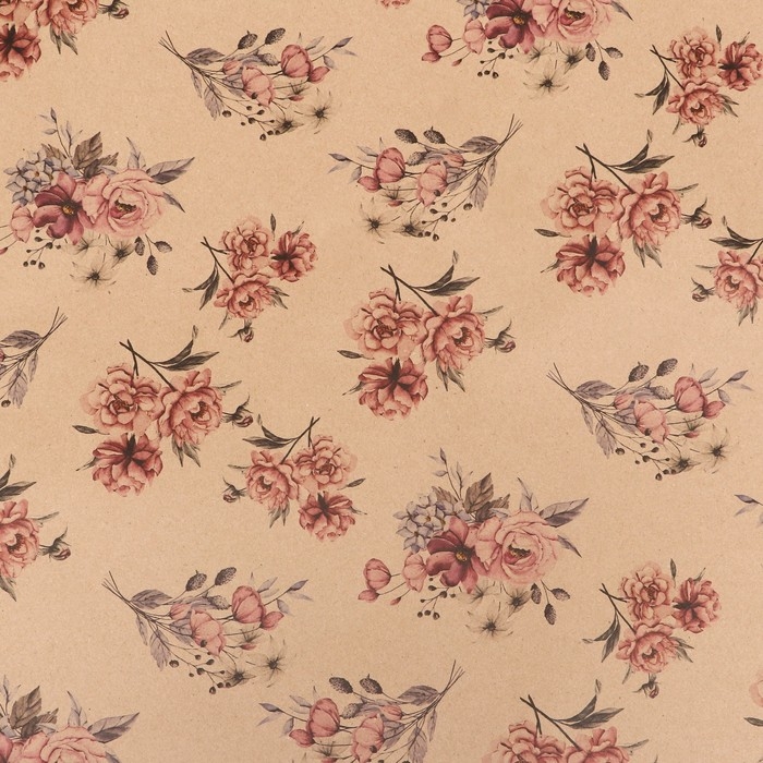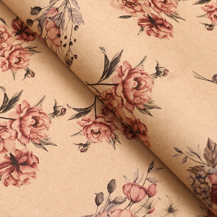 Бумага упаковочная, крафт "Пионы", 70х100 см, 1 лист