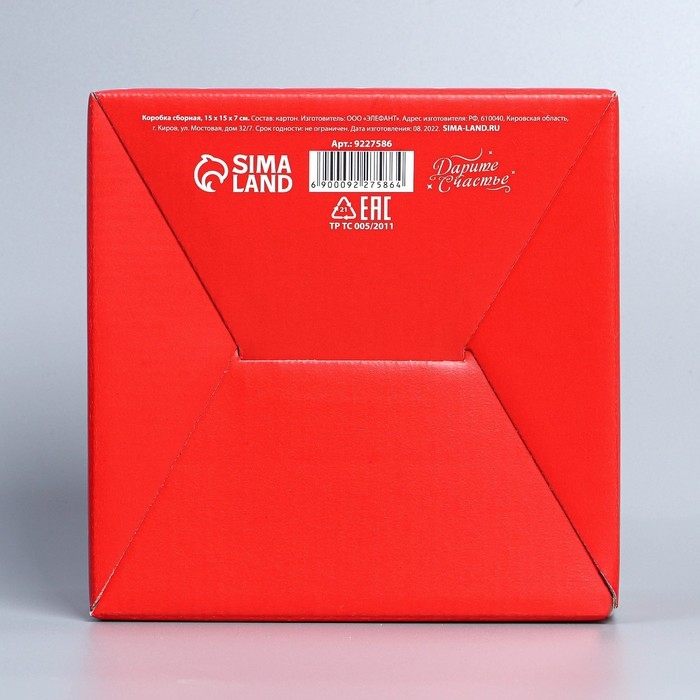 Коробка подарочная сборная, упаковка, «Люблю», 15 х 15 х 7 см