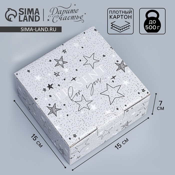 Коробка подарочная сборная, упаковка, «Звёзды», 15 х 15 х 7 см