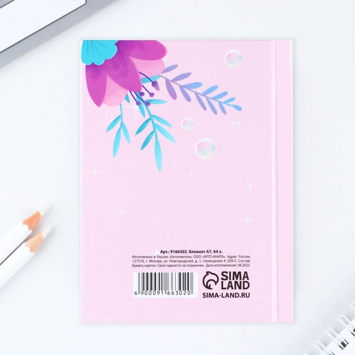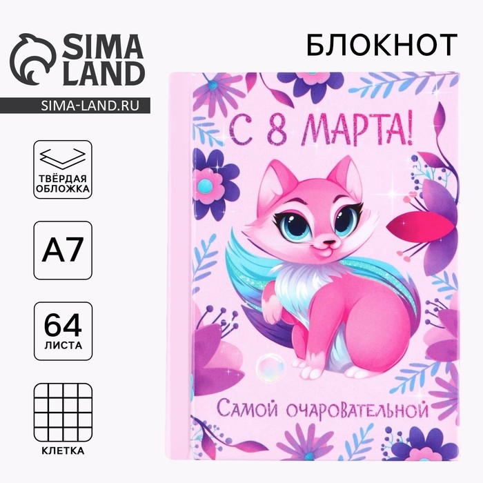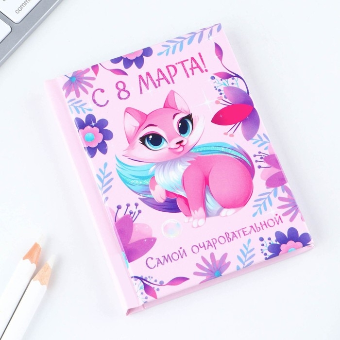 Блокнот в твердой обложке А7, 64 л «С 8 Марта САМОЙ ОЧАРОВАТЕЛЬНОЙ»