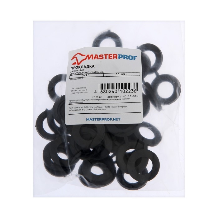Прокладка резиновая Masterprof ИС.131563, 3/4", для стиральной машины, 50 шт.