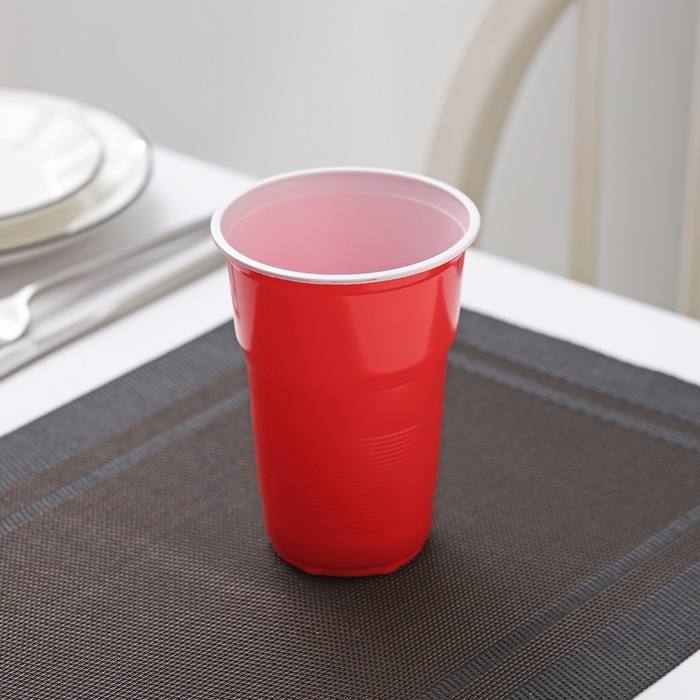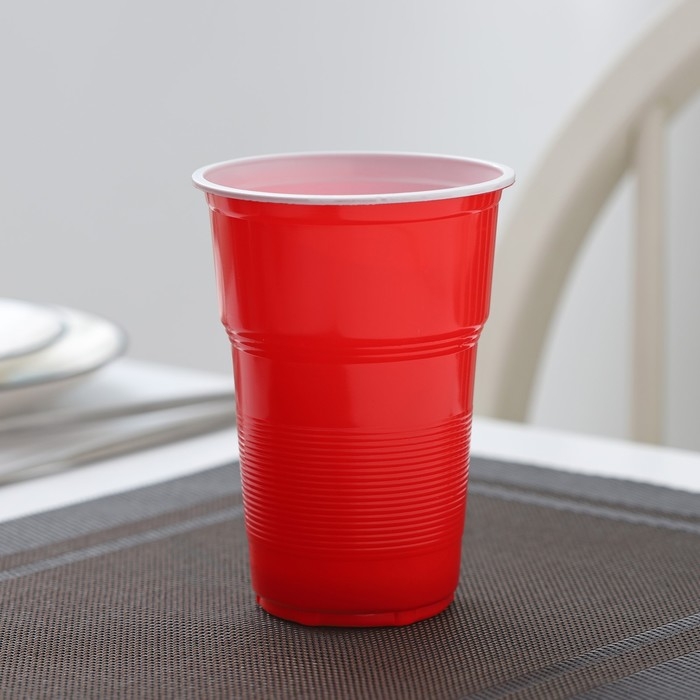 Стаканы пластиковые одноразовые «Факел Экстра», 500 мл, в наборе 10 шт, цвет красно-белый