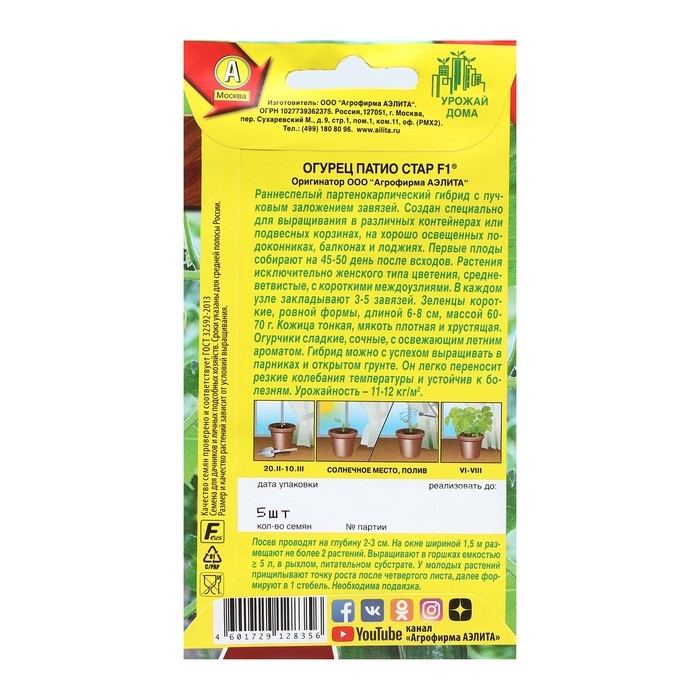 Семена Огурец "Патио стар", F1, 5 шт