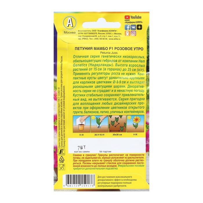 Семена Цветов Петуния "Мамбо", F1, розовое утро, многоцветковая, пробирка, 7 шт