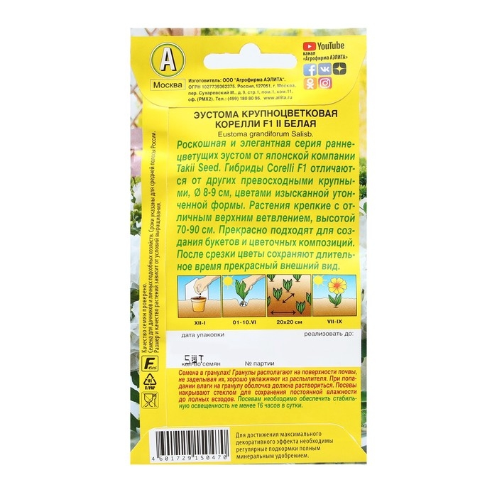 Семена Цветов Эустома "Корелли", F1, белая, пробирка, 5 шт
