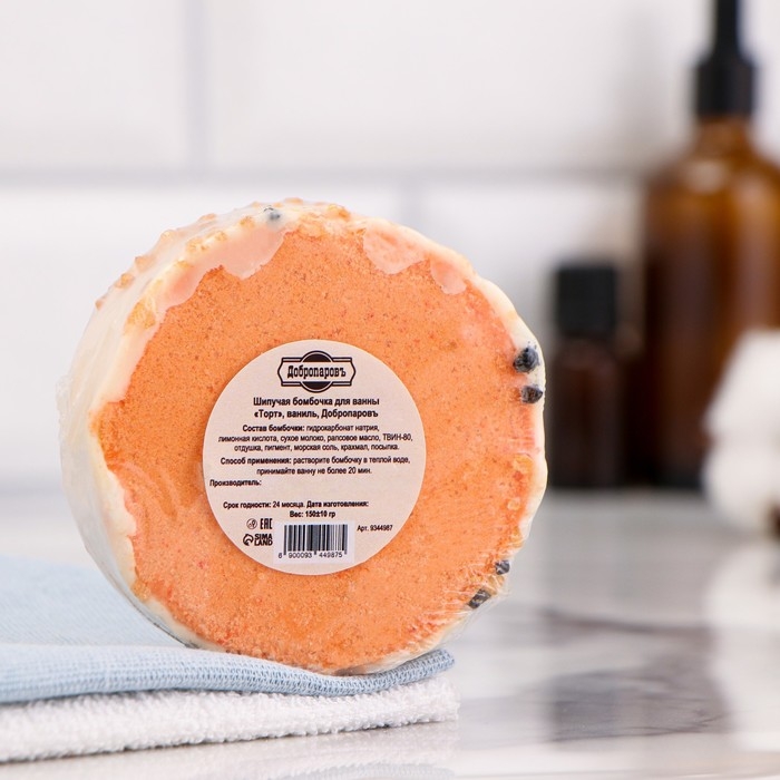 Бомбочка для ванны с солью "Торт", 150 г, аромат ваниль, "Добропаровъ"