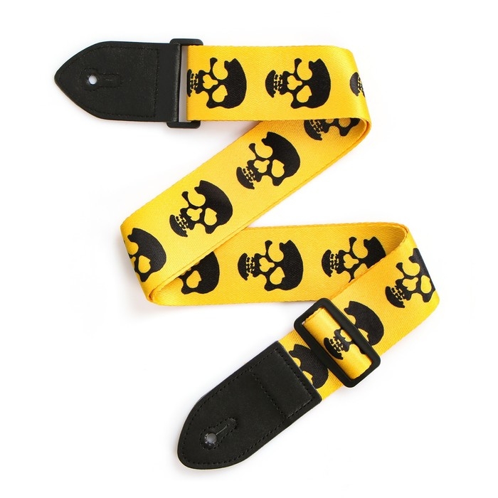 Ремень для гитары Music Life, 60-117х5 см, черепа на желтом