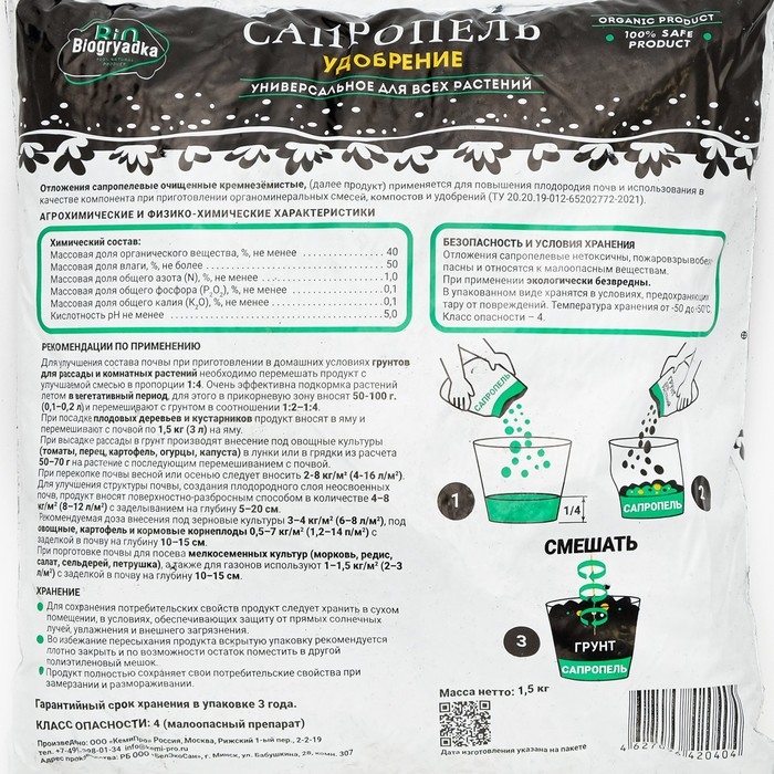 Удобрение "Biogryadka Сапропель" универсальное, пак, 1,5 кг