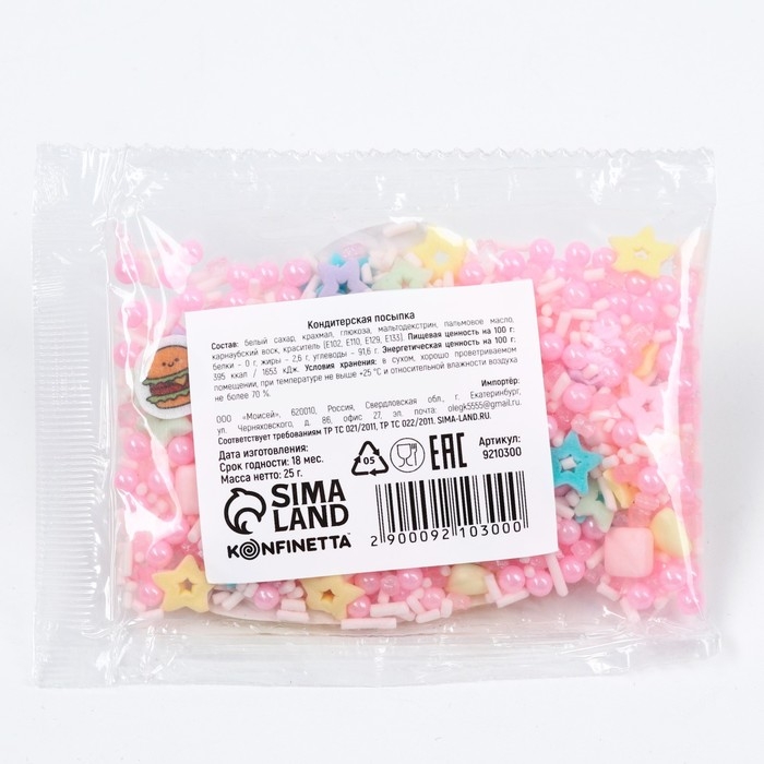 Кондитерская посыпка сахарная: розовая, жёлтая, голубая, 25 г.