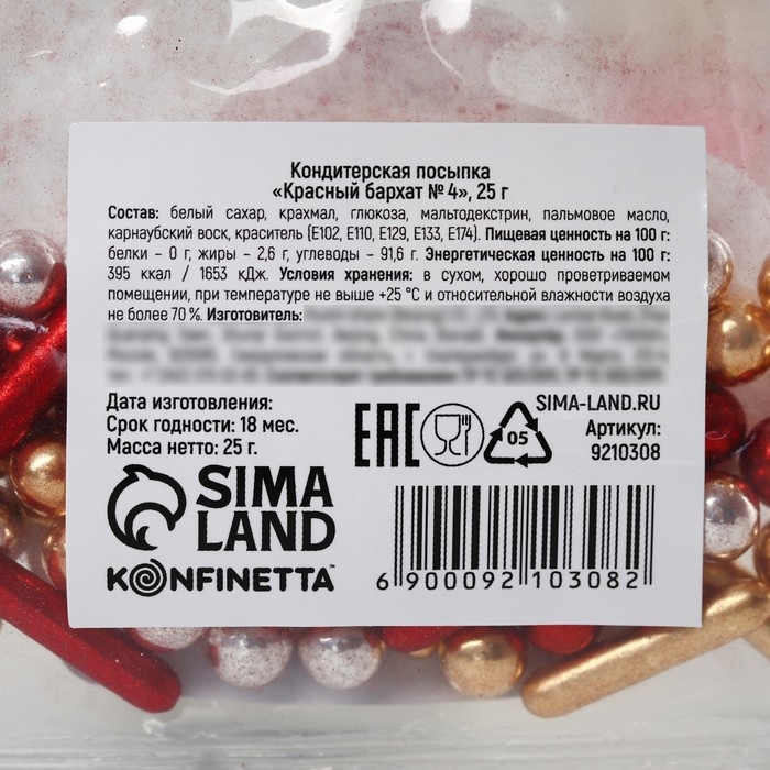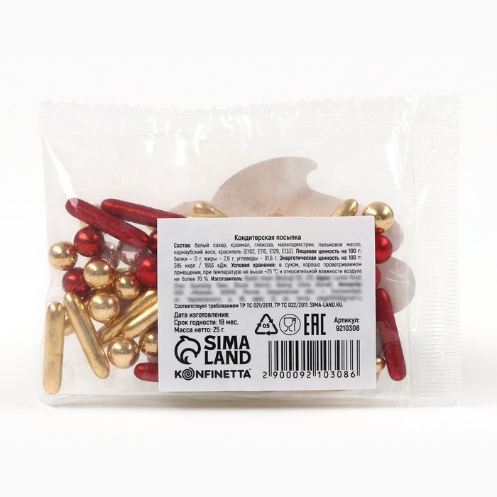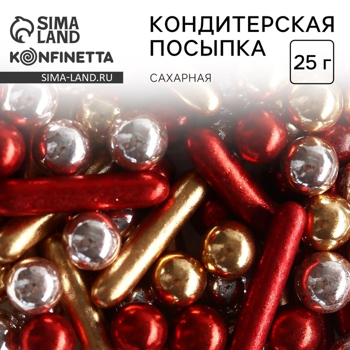 Посыпка кондитерская: золотая, красная, серебряная, 25 г.