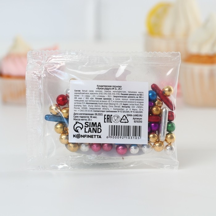 Посыпка кондитерская фигурная: золотая, фиолетовая, зеленая, синяя, 25 г.